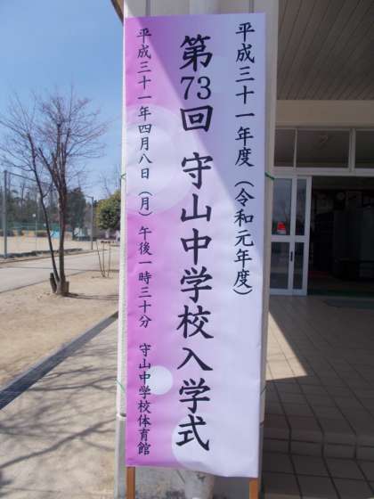 4月8日(月)午後1時30分から入学式が始まりました。入学呼名では立派な返事が響き渡り、意欲あふれるその姿に周囲の皆さんからは今年の入学生の返事は、とても立派であるとお褒めの言葉が式後に聞かれるほどでした。校長先生委の式辞の中では夢が叶う学校作りを目指している守山中であること。新入生には「学ぶ」ことに一生懸命取り組んでほしいこと。「人を思いやる心」を大切にしていってほしいということ。「たくましい体」を作ることのお話がありました。