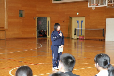 特設駅伝・陸上部の紹介(写真上)、特設水泳部の紹介(写真中)、特設合唱部の紹介(写真下)がありました。特設合唱部は前年度のコンクール出場時の映像を紹介していました。
