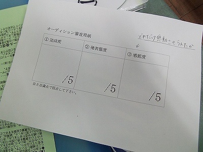 本番に似た緊張感が漂う中でのオーディションとなりました。実力を発揮できたグループ、緊張感に耐えることができず力が発揮できなかったグループがありました。
