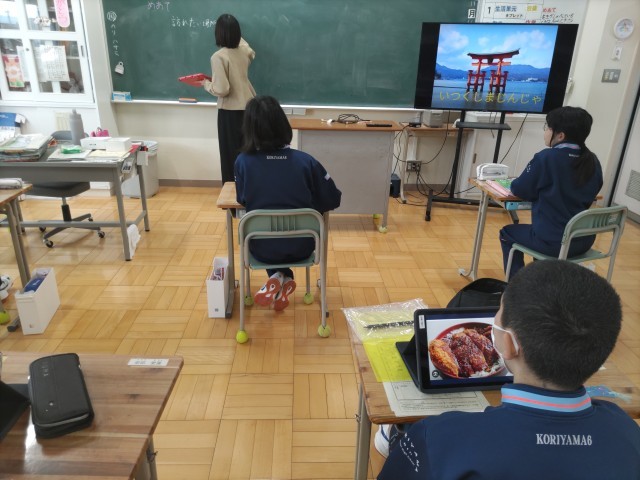現職教育の1人一授業がはじまりました。今日は1年の特別支援学級の英語の授業がありました。行ってみたい、食べてみたいものを調べて、英語でみんなに発表する授業でした。それぞれがユニークな場所や食べ物を紹介していました。