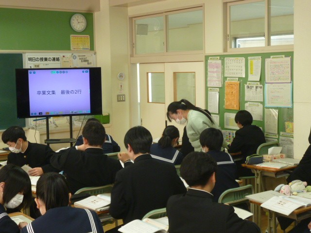 29日(木)の3校時目には3年生のクラスで、2校時目に引き続いて新採用の先生の道徳の授業がありました。「差別や偏見のない社会を実現するために」を主題として、学校でのいじめを題材として被害者の心情を考えながら、いじめ(差別や偏見)について考え、みんなで話し合いました。