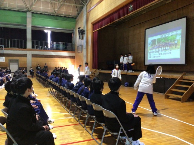 5・6校時目に、新入生歓迎会が体育館で行われました。1年生に少しでも早く慣れてもらおうと、2・3年生から、委員会と部活動の紹介がありました。春休みから発表の準備、ありがとうございました。1年生のみなさん!ぜひ、部活動にも入って、色んなことにチャレンジしてみてくださいね!