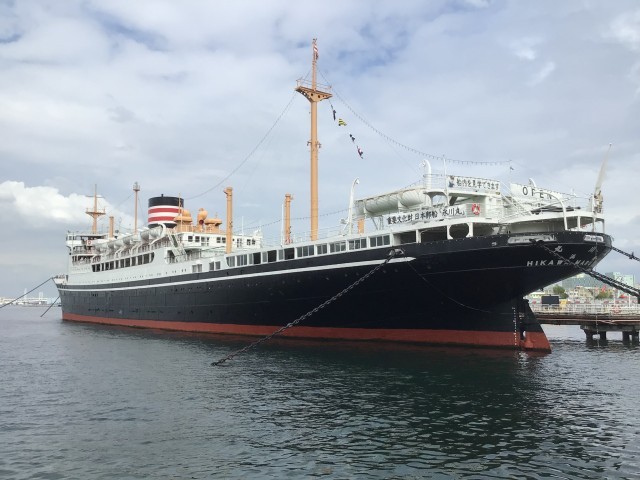 氷川丸の前でクラスの集合写真撮影です。どの班も順調です。