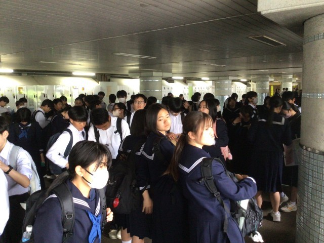 班別研修を終えて、舞浜駅に集合。入園の時間まで、もう少し。