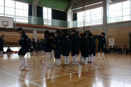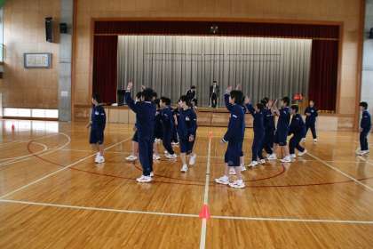 種目は、男女別一斉跳び、男女混合一人ずつ跳び、ドッチボールの3種目を実施しました。クラス替えを行ってから初めてのクラス対抗行事でしたが、気持ちを1つにして、声を出し合ってがんばる姿、仲間を応援する姿が見られました。普段見られない生き生きとした表情で、楽しみながら参加していました。