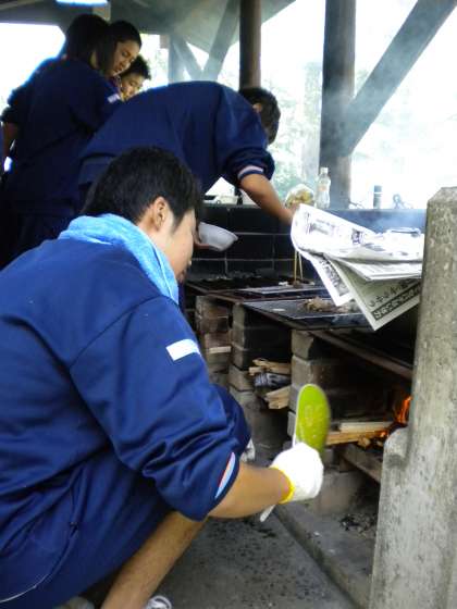 3年生の芋煮会は、15日(水)に休暇村裏磐梯で行いました。昨年度は雨で中止になり、火おこしは初めての経験でしたが、トラブルなく、どの班もスムーズに調理を進めることができました。その中でも、なんと3年4組のすべての班は、虫眼鏡で新聞紙に火をつけて火おこしを成功させたようです。「さすが3年生!」と思われる活動でした。晴天の中、班で協力しながら、とてもおいしくいただきました。