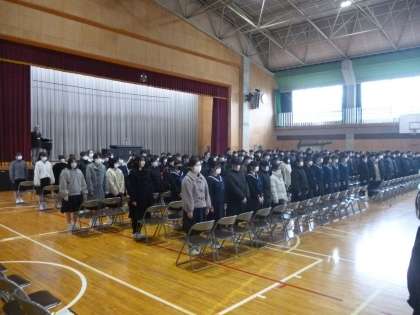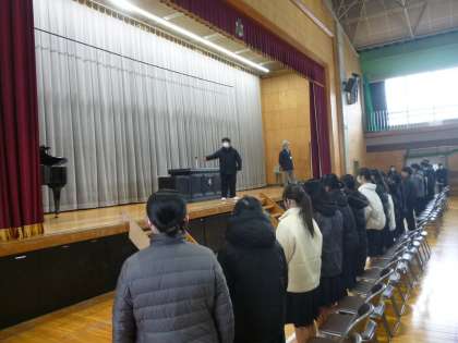 六中日記 第2回卒業式全体練習がありました 公開日 2024/02/27 更新日 2024/02/27 学校から 27日(火)は卒業式の全体練習がありました。卒業式の流れに沿って入場、証書授与などの動きの確認をして、式歌の練習を行いました、 最初は声がなかなか出ませんでしたが、最後は素晴らしい演奏となりました。全体での練習は卒業式予行の1回のみとなります。本番に向けてそれぞれの学年でしっかり練習したいですね。