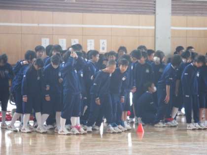 本日の総合的な学習の時間に、学年レクリェーションを行いました。「玉はさみリレー」、「二人三脚リレー」の2種目が行われ、それぞれのクラスが一致団結して取り組む様子がうかがえました。
