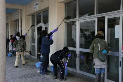 本日14日(土)に、約80名の保護者の方のご協力を得ながら除染作業を行いました。今回は昇降口や1階部分の窓、壁、犬走りなど生徒の出入りが多い所や、荷物を頻繁に置く所を中心に水洗いを行いました。生徒が安全に学校生活を送れるよう努めていきたいと思いますが、今後も変わらぬご協力をよろしくお願いします。本日お休みの中、ご協力をいただいた保護者の方には大変お世話になりました。この場をお借りして御礼申し上げます。