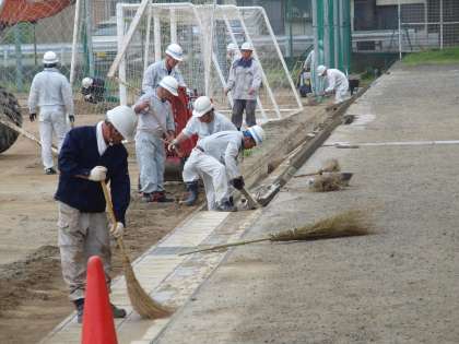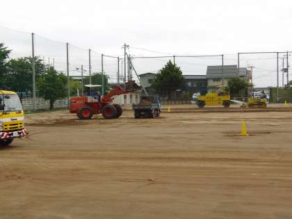 先日の新聞発表にあったように、6月11日(土)に郡山市により本校の表土除去を行いました。校庭全面とテニスコートの表土、側溝の土砂を除去していただきました。大変な作業に従事された多くの方々に感謝致します。今後は風で飛ばないように処理して仮置きした表土と地中に埋める作業を行います。