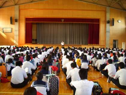 本日12日(月)に、明日から行われる修学旅行の結団式を行いました。団長の校長先生をはじめ、同行される添乗員さん、写真屋さんからも挨拶をいただきました。今回の修学旅行のスローガンは『心身ともに成長できる修学旅行』です。集団生活のマナーやルールを守り、様々なことを五感を使って学んできてほしいものです。旅行期間は13〜15日の2泊3日です。主な学習活動は以下の通りです。