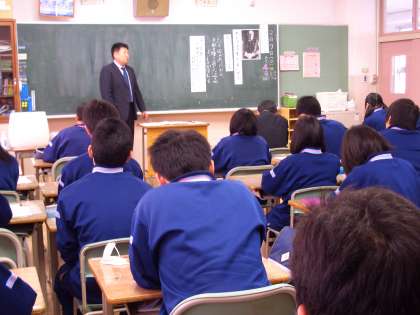 本校では、「生き生きと学ぶ生徒の育成」〜一人一人の能力を伸ばす指導の工夫〜というテーマで、研究を行っています。その研究実践の中で、「1人1授業」を行い、それを他の教員が参観してお互いの教科指導力向上を図っています。3/7(水)は、田中先生が「エジソンの生き方に学ぶ」という道徳の授業を3年1組で行いました。生徒の実態を把握し、様々な教材などを準備したり、発問を工夫した授業でした。「夢を叶えるために必要なことは何か?」ということを生徒一人一人が真剣に考える姿を見ることができました。最後には、卒業を目の前にしたクラスの生徒へ田中先生からメッセージが送られ、とても心温まる授業でした。