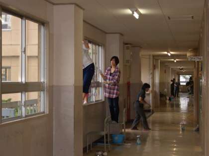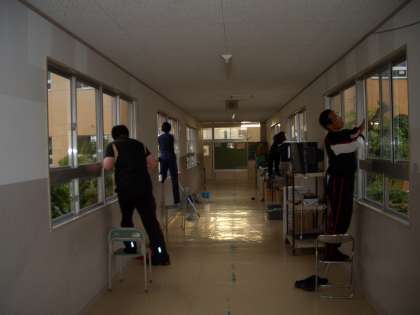 本日7日(土)にPTA環境整備委員会主催で、2学年の奉仕作業を行いました。あいにくの雨で、予定していた外の作業はできませんでしたが、校舎内の窓ふきを分担して行いました。短時間ではありましたが、とてもきれいになりました。開会式で校長先生からも「環境は人をつくる」という話がありましたが、本校生徒のためにお忙しい中活動していただき本当にありがとうございました。生徒達も気持ちよく学校生活を送れそうです。これからも学校教育活動へのご理解とご支援をどうぞよろしくお願いします。