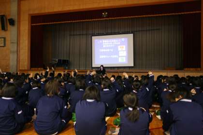 本日26日(月)に、第二給食センターの兵藤弘子先生を講師としてお招きし、第2学年の生徒を対象に「食に関する指導」を行いました。講義を通して、普段の自分自身の食生活を見直し、「朝食の大切さ」「バランスのとてた食事」などをわかりやすく理解することができました。これから学んだことを生かし、健康的な生活が送れるよう努力していきたいと思います。兵藤先生にはお忙しい中講演して頂き、本当にありがとうございました。この場をお借りして厚く御礼申し上げます。