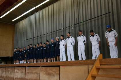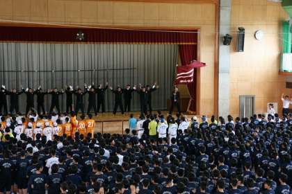 本日10日(月)に県中総合大会に出場する部活動の激励会を行いました。ステージに上がったどの選手も自信に満ちあふれ、「良い成果を予感させる」そんな発表の姿でした。応援では、団長の青木君を中心によく声が出ていて、選手に大きな力を与えていました。お礼の言葉を述べた硬式テニス部部長の嘉齊君から、「県中大会を明後日に控え、各部の練習も最後の準備に取りかかっていますが、今日全校生の応援をいただき、期待の大きさを実感し、『やってやるぞ』という想いがより強くなりました。大会では、それぞれの部の目標達成に向け全力を出し尽くして試合に臨んできます。これまでご指導して下さった先生や支えてくれた人たち、そして応援してくれる全ての方へ感謝の気持ちを、精一杯のプレーで表します。今日はありがとうございました。」と力強く述べていました。ぜひ、その想いを胸に大会に参加してほしいものです。