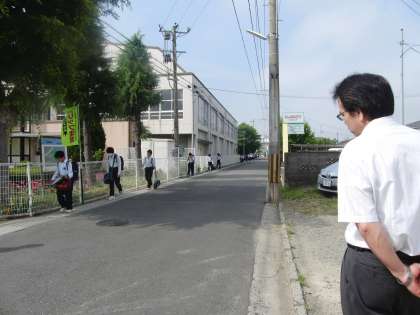 生徒の交通事故防止のために、危険度の高い場所を合同点検をし、関係機関がそれぞれの役割に応じて実施可能な対策を行う目的のために、本日11日(火)の朝に郡山第六中学校通学路(郡山第六中学校体育館西側市道)を点検し、対策会議を行っていただきました。危険箇所が少しでも改善し、安全に登下校できるようになればと願っています。今回参加していただいた方は以下の通りです。