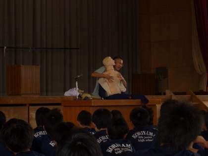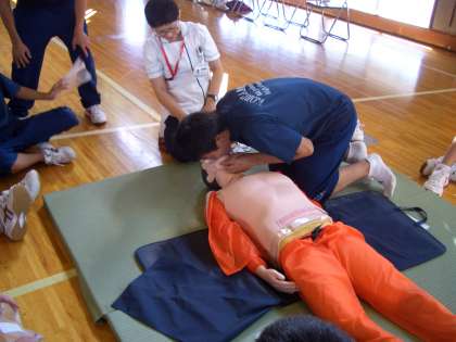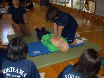 27,28日の2日間にわたって、3年生を対象に救急蘇生法の講習会を実施しました。講師の先生方には、救急蘇生法の目的や重要性、そして心臓マッサージや人工呼吸の仕方をとてもわかりやすく教えていただきました。段階を踏まえて行った合計3度の実習を繰り返すうちに、生徒の心肺蘇生の技術も明らかに上達していました。万が一の時に、周りにいる人みんなで協力しながら助けてあげたいと強く思った講習会でした。以下は参加した生徒の感想です。