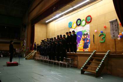 本日19日(土)に文化祭「霜月祭」を行いました。午前中は校内合唱コンクール。どのクラスも心を一つにして素晴らしい歌声を響かせていました。一生懸命さが聴いている人に伝わる合唱でした。午後はステージ発表でした。はじめに長崎派遣事業、そして自然科学部の発表がありました。「平和」について、そして「生活の身近なものの使い方」について考えさせられた発表でした。続いて、合唱部の発表。「合唱魂」というテーマで劇形式の発表でした。「合唱の良さ」が伝わる、楽しく、そして感動的な内容でした。吹奏楽部の発表は、大いに全校生を盛り上げてくれました。合唱部も吹奏楽部も3年生が本日の文化祭で引退。様々な想いを胸に表現してくれました。生徒会アトラクションでは、3年生の各クラスが趣向を凝らした内容で、とても楽しく、それぞれのクラスの個性を垣間見ることができました。短期間の準備、しかも1日だけの文化祭でしたが、それぞれの生徒が努力してきたものを十分感じ取れる文化祭でした。1人1人がとても輝いていました。「みんなで力を合わせると素晴らしいものができる、素晴らしい力を発揮する」そのことをこれからの学校生活でも忘れず、お互いに励まし合いながら、学校生活を送っていってほしいと願っています。