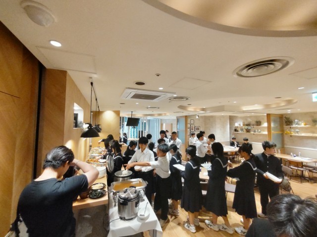 昼食のバイキング。夕食と朝食合わせて4度目のバイキングですが、みんな食欲旺盛です。