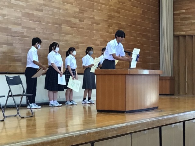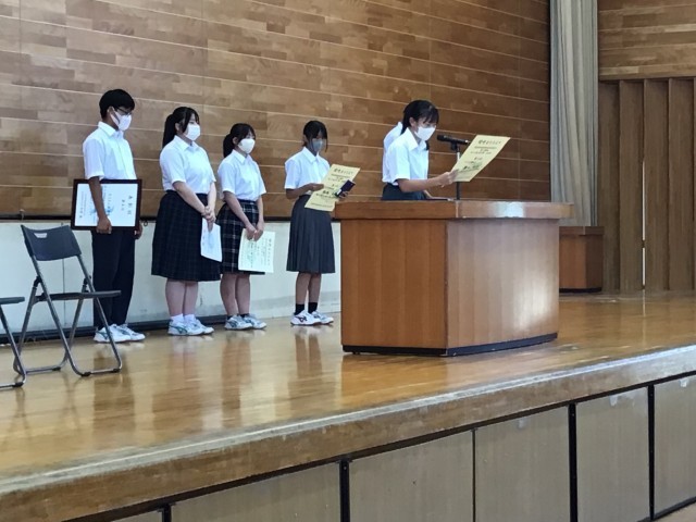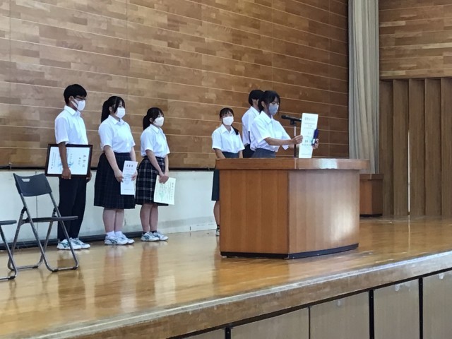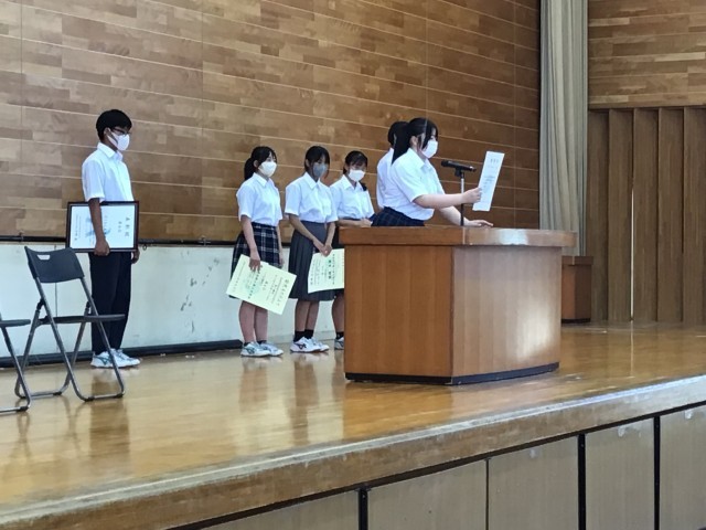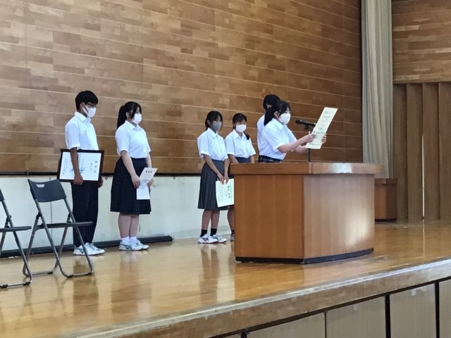 1学期終業式の前に、今学期最後の受賞報告がありました。