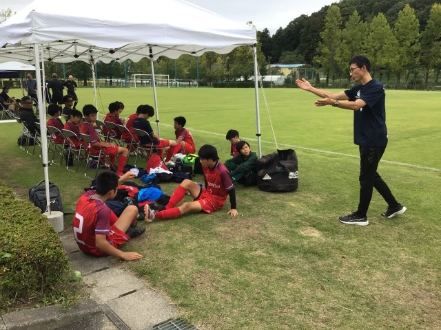 サッカー 同点で後半をむかえます。
