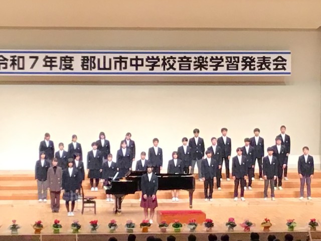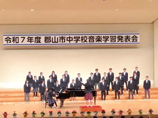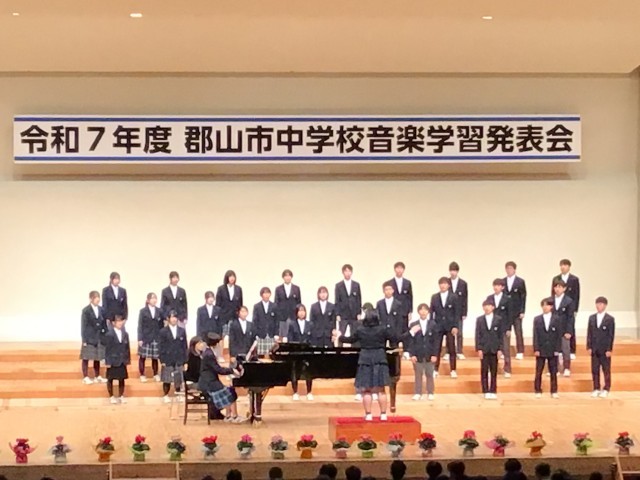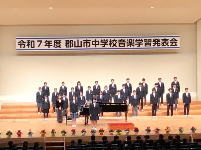 郡山市中学校学習発表会が開催され、本校から3年2組と3年5組が参加しました。両組とも同じ曲「結〜ゆい〜」を合唱しました。今での練習の成果を発揮して素敵なハーモニーを会場全体に響かせました。2組、5組の皆さん心に響く合唱ありがとうございました。