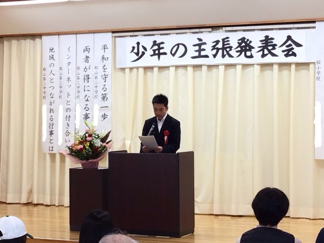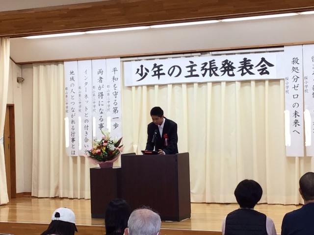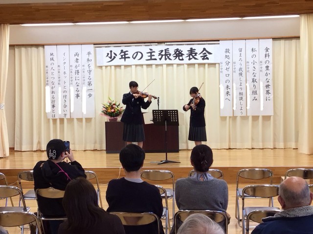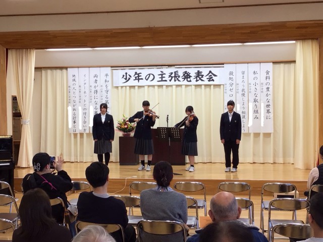 桜地区少年の主張が開催され、本校から4名の生徒が参加しました。中学生らしく自らの経験や体験の中から考えたり、感じたりしたことを自分の言葉で自分らしく表現しました。とても素晴らしい発表でした。また、総合文化部音楽コースの演奏も行われ、心のこもった演奏で会場の皆様の心に響いていました。参加した生徒のみなさんお疲れ様でした。ありがとうございました。