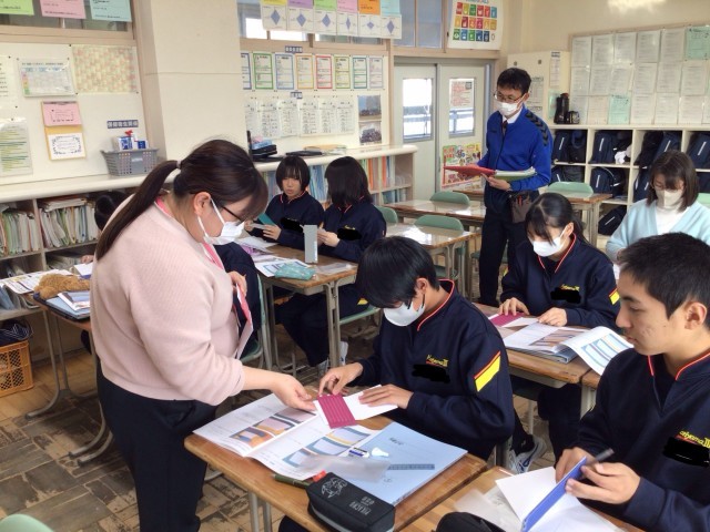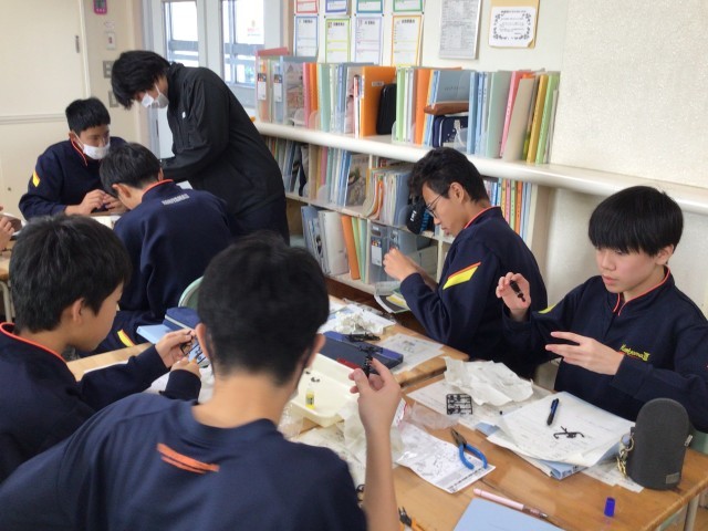 2年生で職業体験、講話を実施しました。専修学校の先生方を講師に迎え本校で実施しました。6分野で行い工業(自動車、プログラミング)、医療(応急手当、救命士)、衛生(美容師)、福祉(介護福祉士)、商業(ビジネスマナー)、文化(グラフィック、アニメーター)にわかれて行いました。自分達の興味のある分野なので普段の授業以上に積極的に参加して、楽しく職業について学ぶことが出来ました。