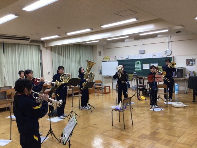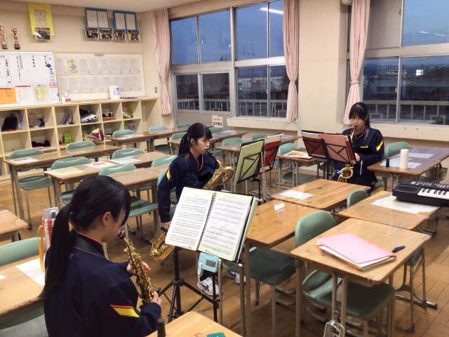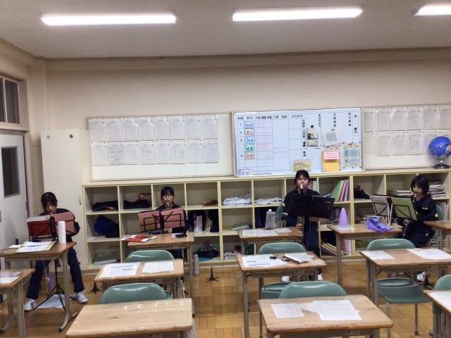 吹奏楽部の練習の様子です。今週末にはアンサンブルコンテスト県南支部大会が開催されます。練習の成果を発揮して素晴らしい演奏を期待しております。頑張れ吹奏楽部。