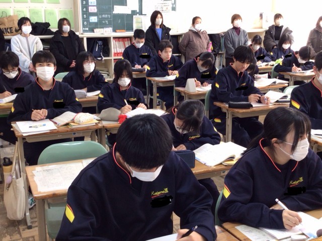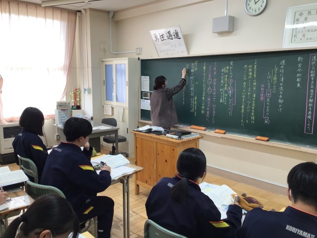 3年4組の国語の授業参加の様子です。万葉集、古今和歌集、新古今和歌集に触れて,和歌の歴史的背景を踏まえ鑑賞文を書くなど和歌に親しんでいました。