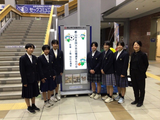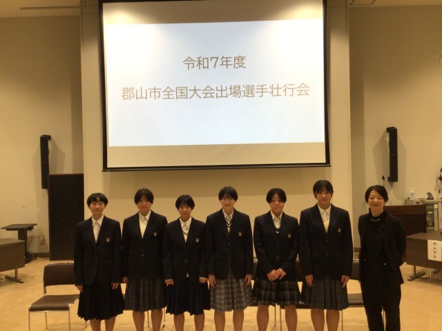 令和7年度郡山市全国大会出場選手壮行会が開催され、本校から女子バスケ部の3年生が参加しました。女子バスケ部は来年1月に東京で開催される第6回全国U15バスケットボール選手権大会、京王Jr.ウインターカップに県代表とし参加します。目標はベスト4です。ベストコンディションで全国大会に臨み、目標に向けて頑張れ女子バスケ部。