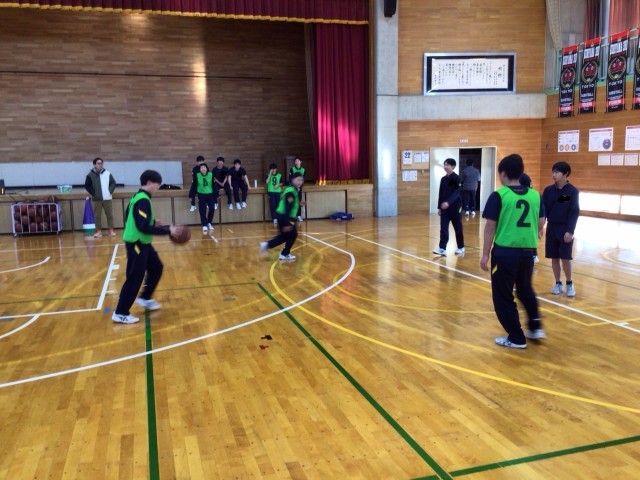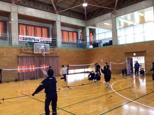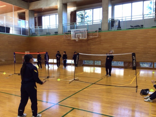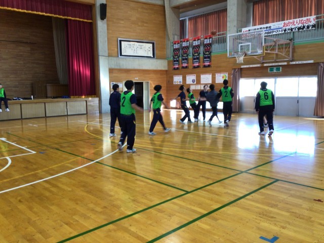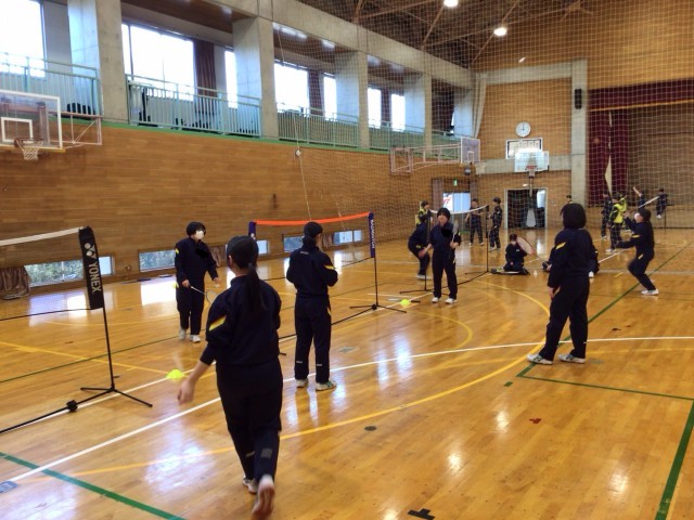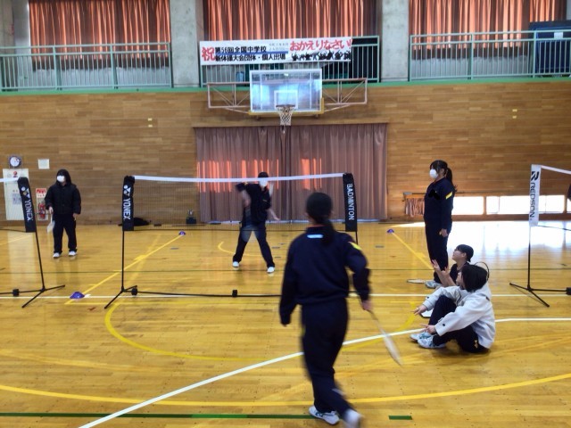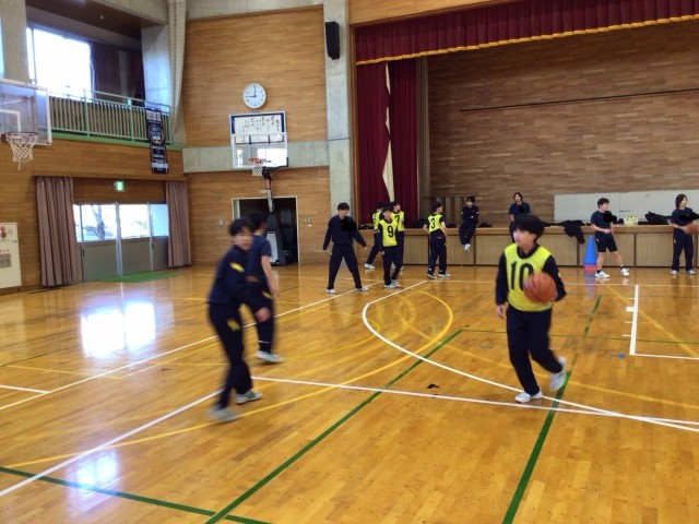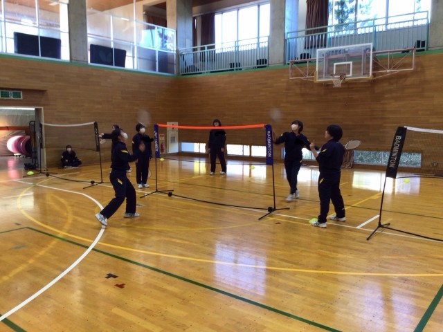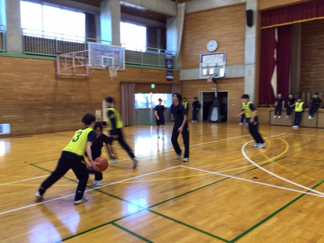 3年1、2組の保健体育の授業風景です。女子はバドミントン、男子はバスケットボールを行っていました。バドミントンは個人戦のリーグ戦、バスケットボールはハーフコートやオールコートでのゲームでした。3年生は体を動かす機会が少ないので、保健体育の時間で楽しく運動ができました。