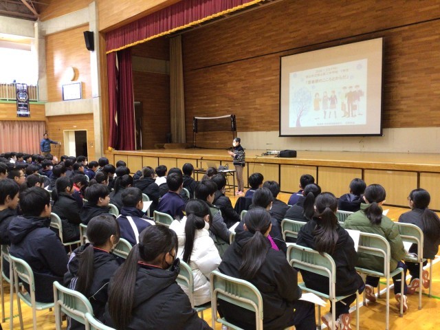 1年生の思春期講座が行われました。「思春期の体と心について知ろう」という演題で助産師さんからの立場で講話がありました。生徒は真剣な態度で耳を傾けていました。