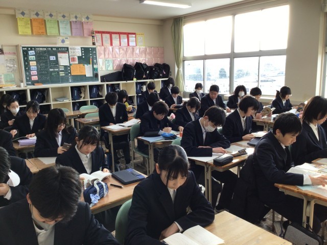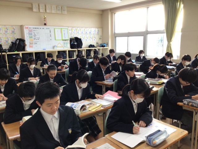 本校では8時10分から25分まで三中タイムとして学習や読書の時間にしております。また1日の日程を確認したり、準備をしたりしています。三中タイムから1日がスタートしています。