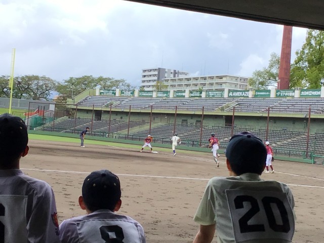 2回表 遠藤くんの2塁打で先取点。2回終了1:0