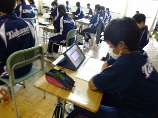 3年生の教室では、数学の授業です。パズルを解くように因数分解を行う授業。その結果をロイロノートで共有する。生徒たちは次々と因数分解している姿がありました。