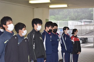 本日より市中体連陸上大会が始まります。今回の陸上大会は、新型コロナウイルス感染症拡大防止対策のため保護者の方の観戦ができません。高瀬中の大会の様子は、HPでアップしてまいります。朝の集合の様子です。気合十分。元気に「行ってきます」の声です。