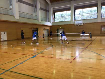 練習試合は雨のため中止になりましたが、体育館で練習してます。