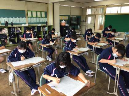 本日、定期テスト1を実施しています。1年生は中学校生活で初めての定期テストです。真剣にテストに取り組んでいます。