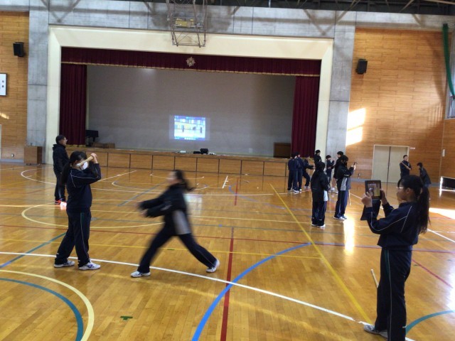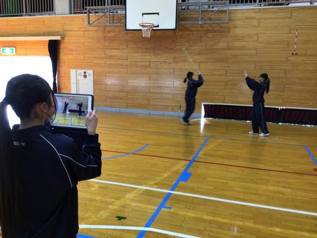 タブレットで撮影してもらった自分のフォームを確認していました。