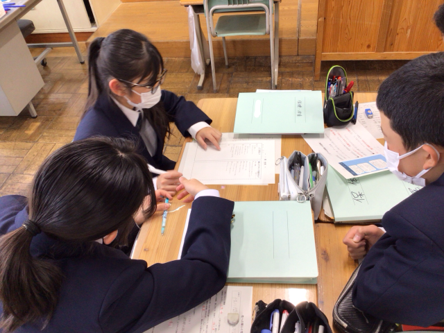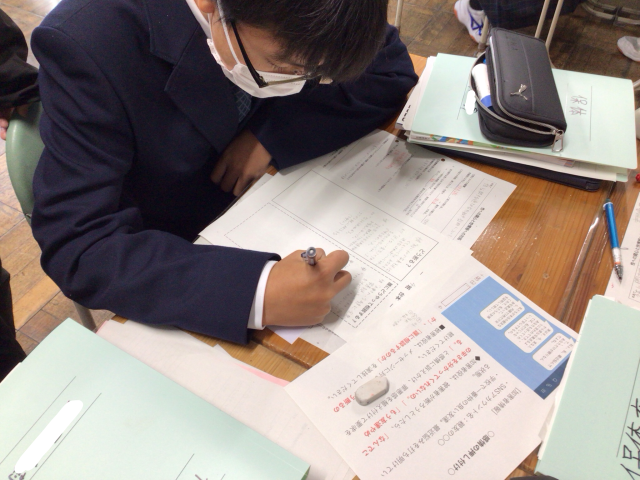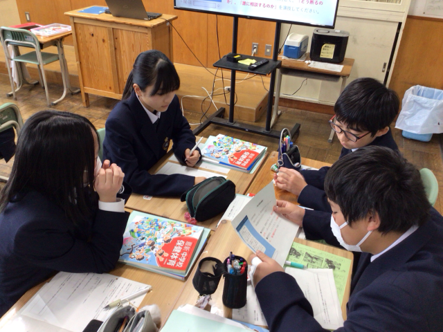 1年生の教室では、保健の授業でインターネット上でのトラブルの防止策や対処の仕方について考えています。