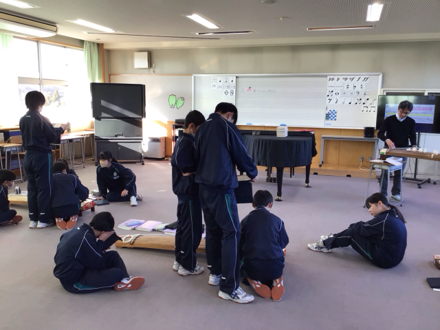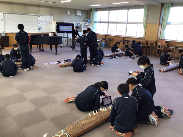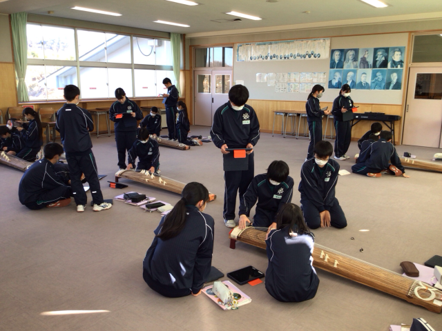 音楽室では1年生が「お箏」でさくらさくらの演奏テストを行なっていました。