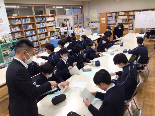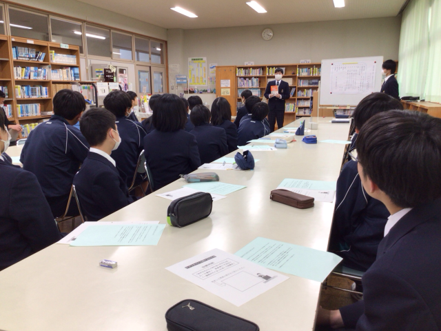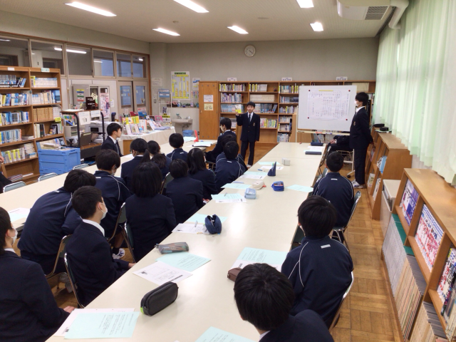 本日、図書室にて校内ビブリオバトルが開催されました。通算で第11回目になります。5名の代表生徒の発表のあと、投票によってチャンプ本が決定しました。