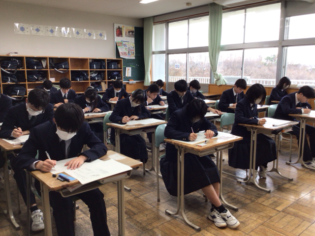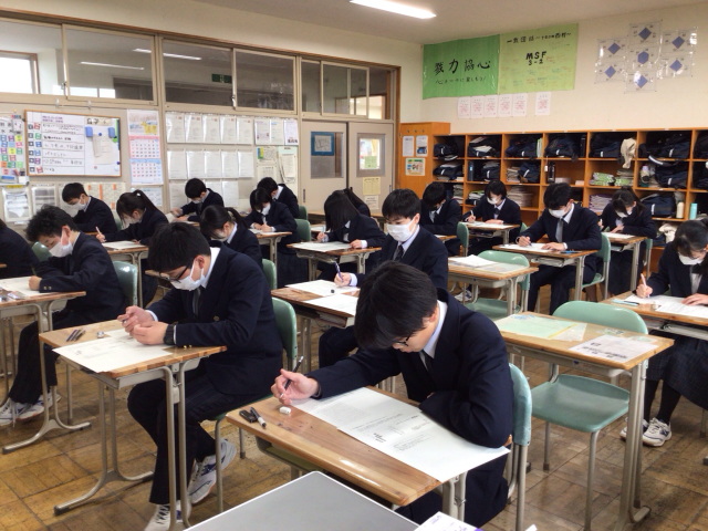 3年生では、本日も定期テストに取り組んでいます。