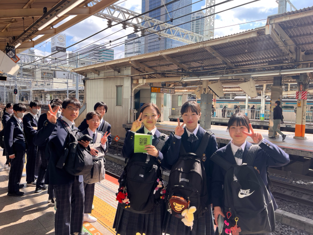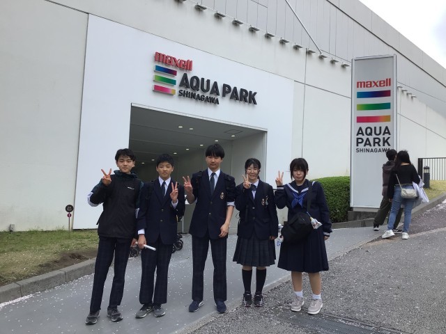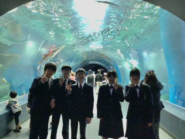 《東京班別自主研修》各班、一生懸命調べて作成した計画通り、公共交通機関を使いながら移動しています。アクアパーク品川では、かわいいお魚たちを前に、大興奮の連続です。