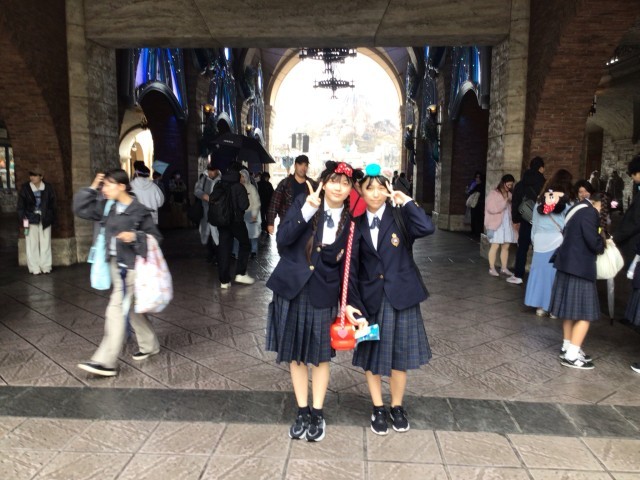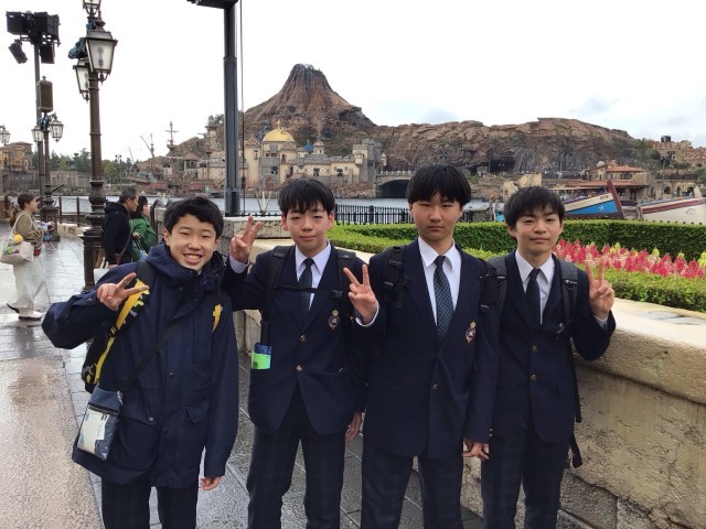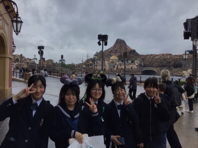 ディズニーシーでの様子です。雨が降ったり止んだり、そして風が強い中でしたが、生徒は思い思いのアトラクションで楽しんでいました。