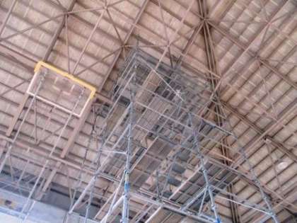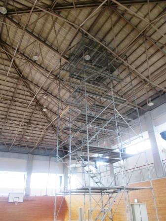 体育館 雨漏り工事始まりました