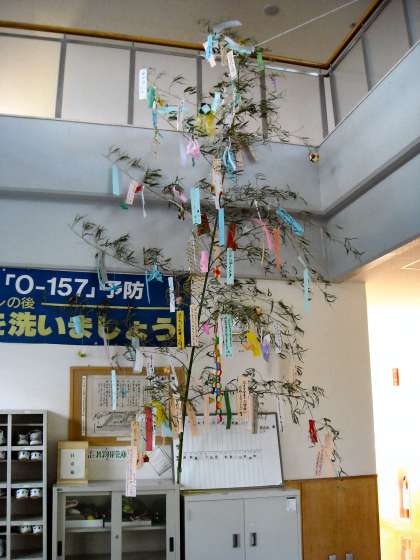 7月5日(火)1年生昇降口に七夕の竹飾りが飾られました。