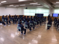 1年1組、2組、3組が本日屋内プールでの水泳教室に望みました。