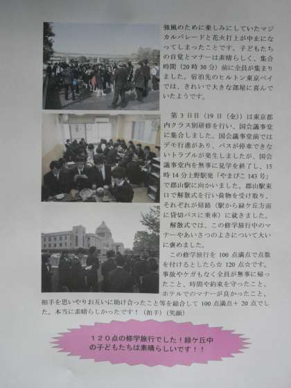 記事の内容は、「120点の素晴らしい修学旅行(第3学年)」です。